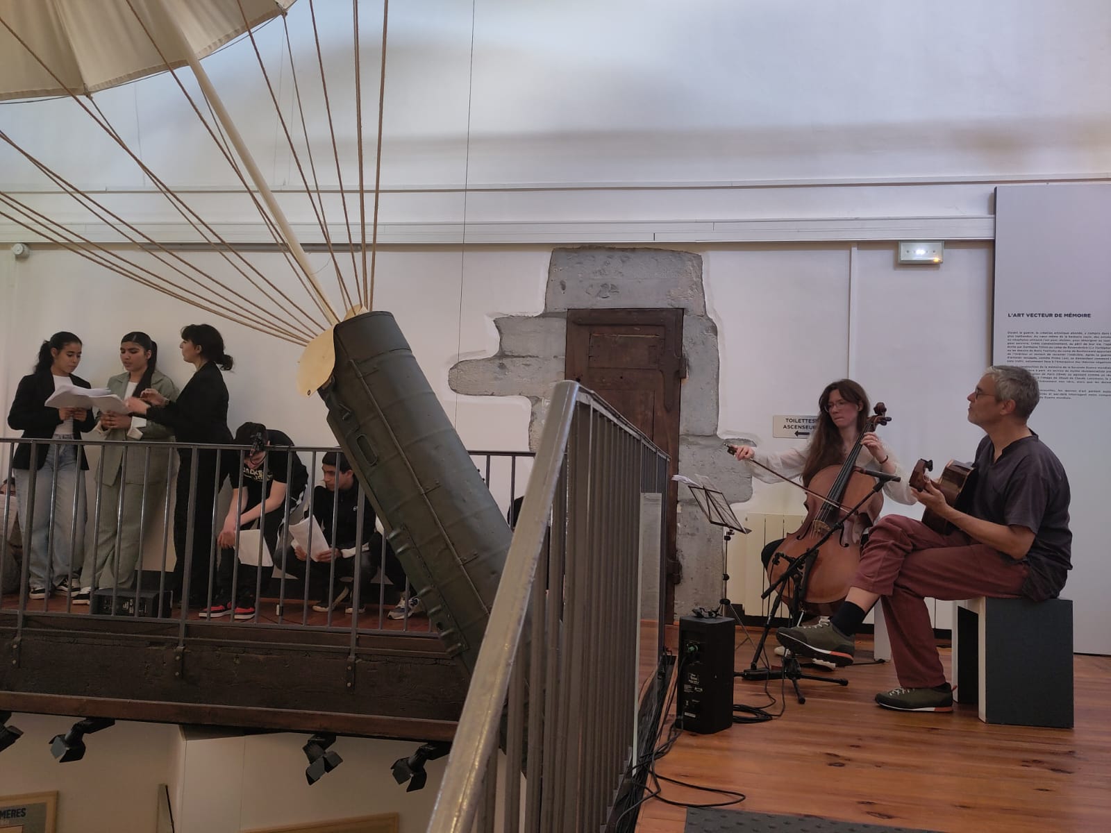 Cette initiative a été rendue possible grâce à l’accompagnement bienveillant de la compagnie musicale Les Chemins Libres, en partenariat avec le Centre culturel de rencontre d’Ambronay. La collaboration avec des musiciens professionnels a été une source d’inspiration précieuse, et un véritable moment de partage pour les élèves. Le lieu même du concert a donné à la représentation une intensité particulière. Le musée, qui nous a si généreusement accueillis, riche de témoignages, d’objets et de documents liés à la Résistance française, a offert un cadre symbolique fort. Les voix des élèves y ont tissé un dialogue entre les mémoires française et italienne, unies le temps d’un soir dans un hommage commun à ceux qui ont résisté. À travers le chant, ces deux histoires se sont répondues, portées par la jeunesse d’aujourd’hui.